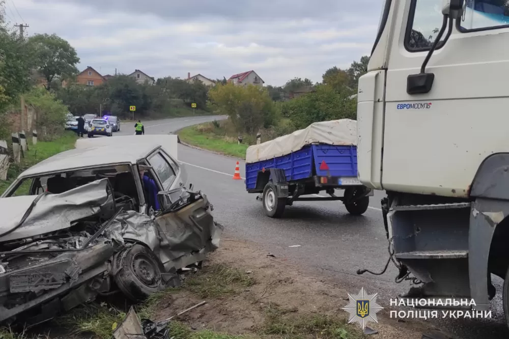 ДТП трапилась 2 жовтня у селі Зарубинці Скалатської територіальної громади близько 15:20. За попередніми даними правоохоронців, водій вантажівки МАН виїхав на смугу зустрічного руху і спровокував зіткнення з автомобілем ВАЗ 21099. Унаслідок удару водія та пасажира ВАЗу госпіталізували з тілесними ушкодженнями. Про це повідомили в пресслужбі ГУНП у Тернопільській області.