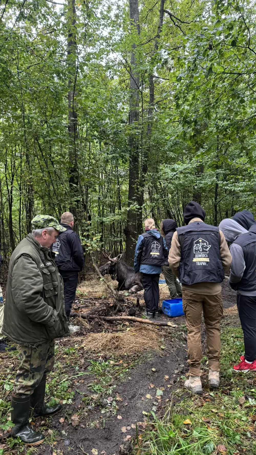 Після огляду стало зрозуміло – лосеві потрібна термінова допомога у спеціалізованій клініці. Кілька днів у холоді, вологості та без можливості рухатися зробили свою справу. Звір був виснажений і зневоднений, хоча переломів кісток у нього не виявили.