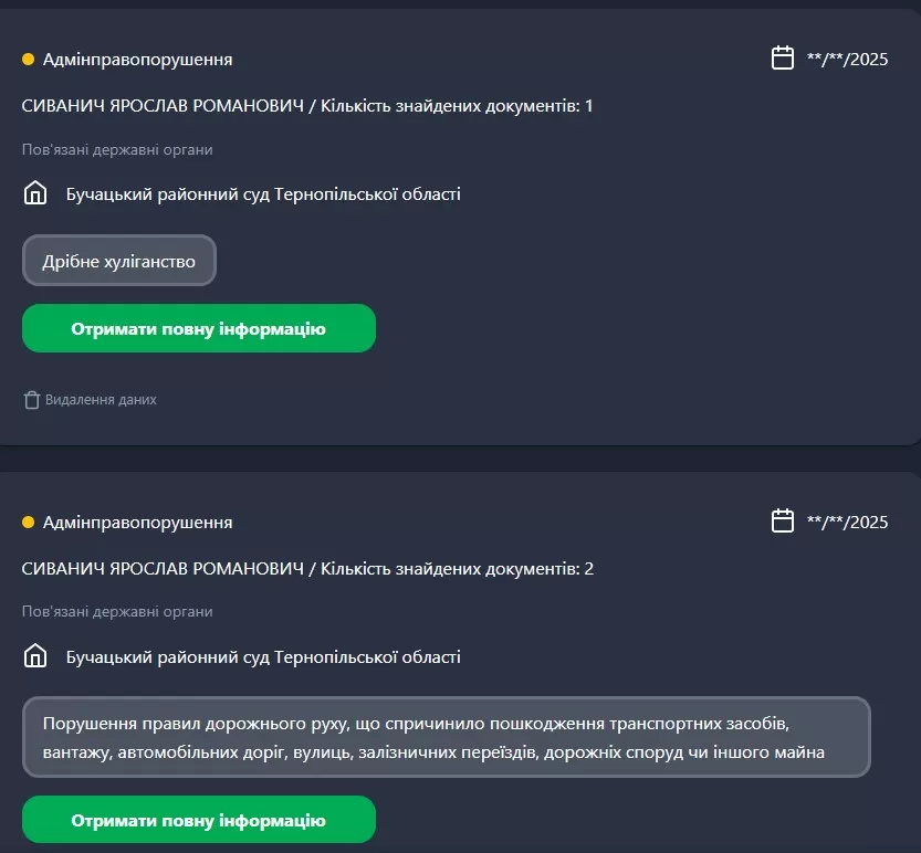 За даними відкритих реєстрів, Ярослав Сиванич проходить у п’яти боргових провадженнях. Серед кредиторів – Бучацька міська рада, Управління патрульної поліції у Житомирській області та податкові органи. Також на його ім’я зареєстровано щонайменше п’ять судових справ у Бучацькому районному суді та одна в Івано-Франківському міському суді.
