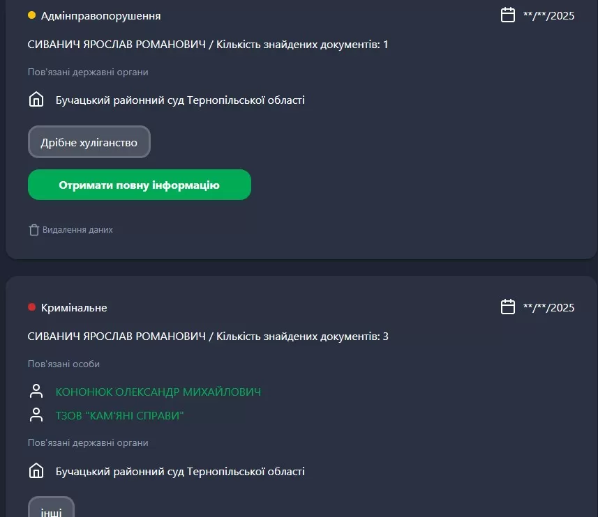 Раніше “Терміново” розповідало про  діяльність ТОВ “Кам’яні справи”. У квітні 2025 року ми писали про те, як фірма обманювала родини померлих на сотні тисяч гривень. Люди платили гроші за пам’ятники, але не отримували ні якісних послуг, ні повернення коштів. У деяких випадках компанія демонтувала вже встановлені пам’ятники, вимагаючи додаткової оплати.