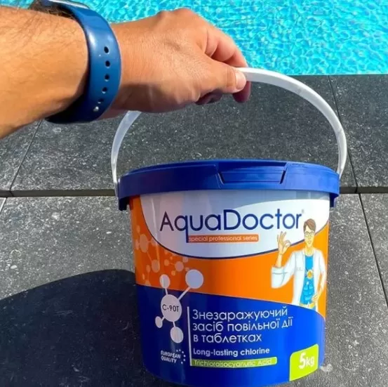 AquaDoctor C-90T – це інноваційний продукт, який забезпечує поступове вивільнення хлору протягом кількох тижнів, що дає змогу підтримувати чистоту в басейні без щоденної турботи.