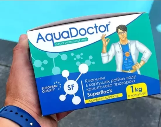 Якщо вода у басейні стала каламутною, застосуйте таблетований коагулянт AquaDoctor Superflock.