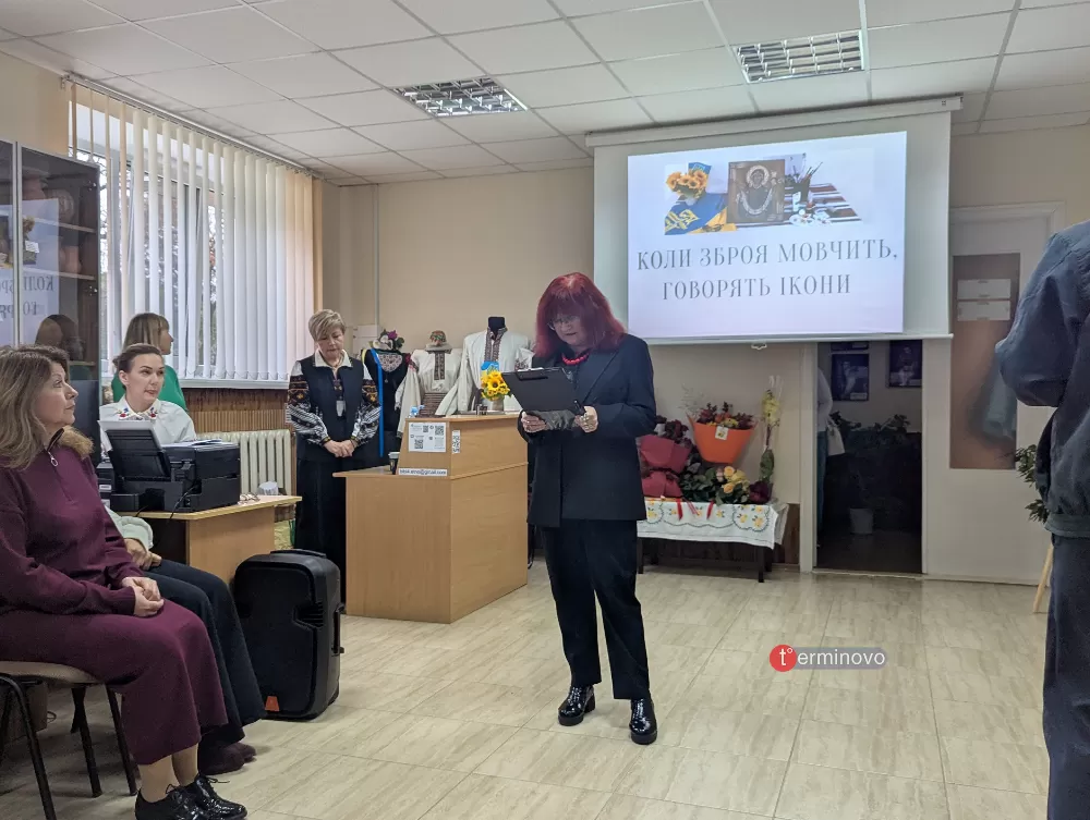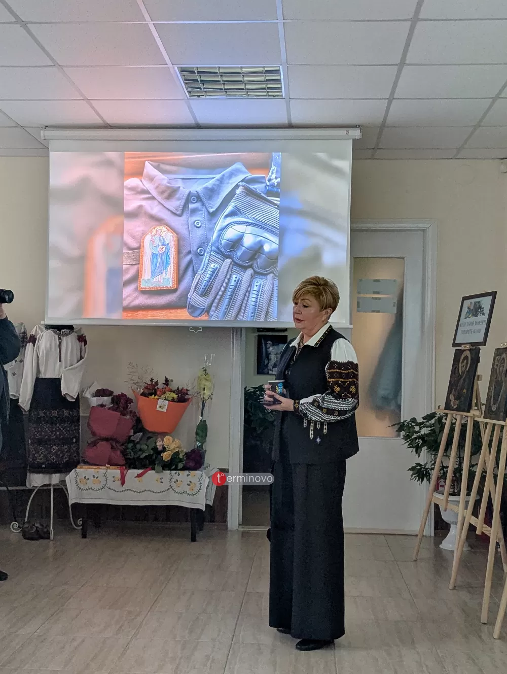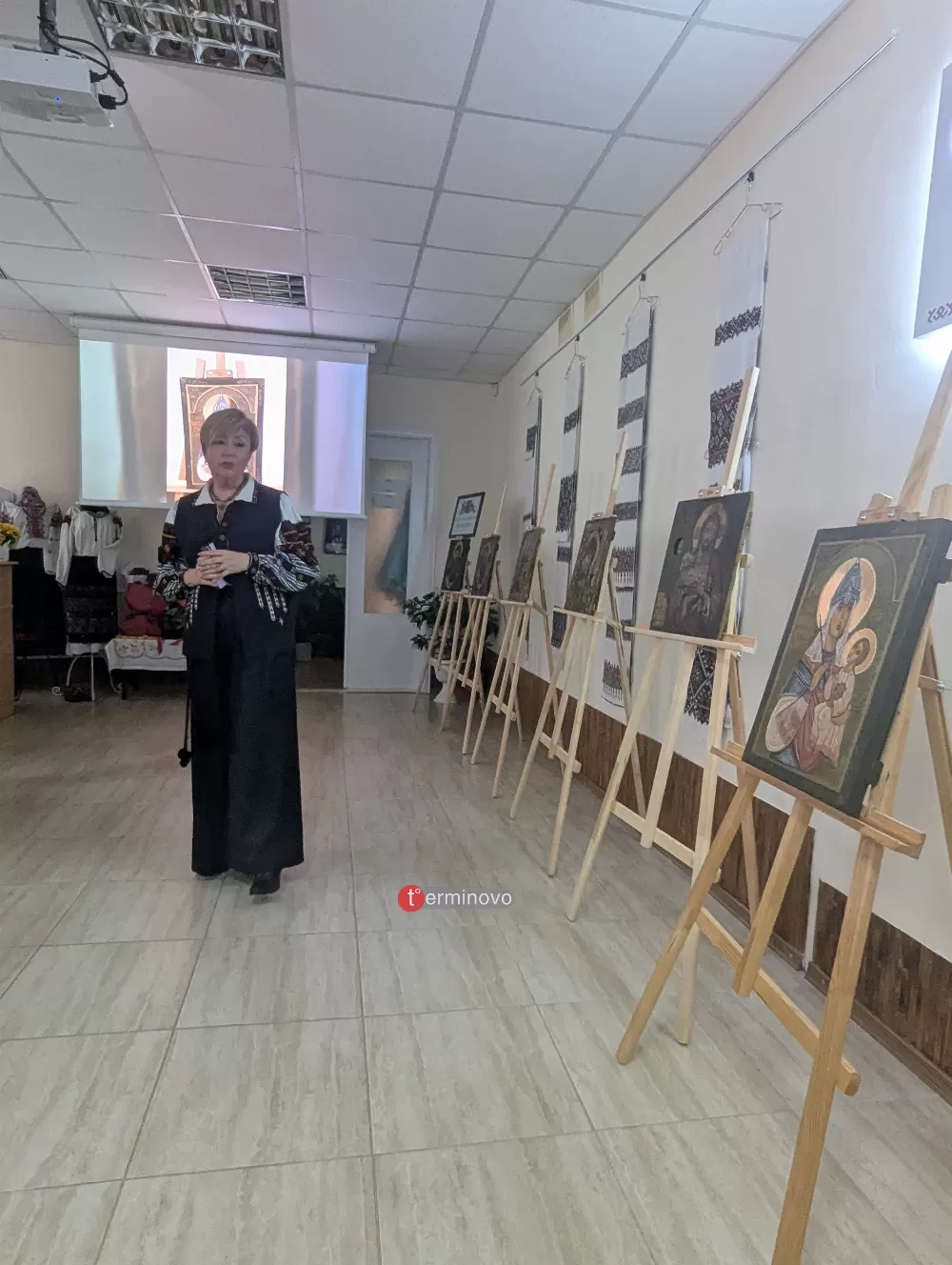 Журналістка “Терміново” побувала на урочистому відкритті цієї виставки та спробує передати читачам ту особливу атмосферу, яка панувала в залі – атмосферу тепла, щирості та Божої благодаті. Сьогодні розповімо про жінку, яка творить ікони серцем, допомагає захисникам України та несе у світ материнську молитву і світло надії.