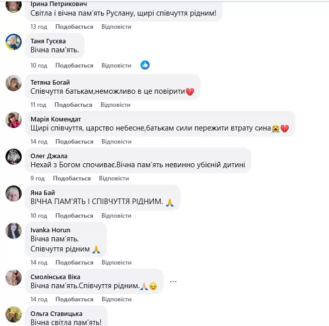 У коментарях люди, які його знали, кажуть, що Руслан був світлою та доброю дитиною.