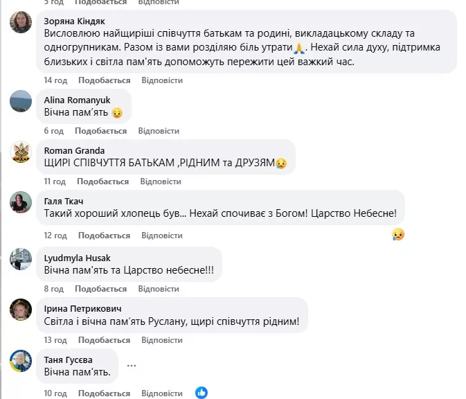 У коментарях люди, які його знали, кажуть, що Руслан був світлою та доброю дитиною.