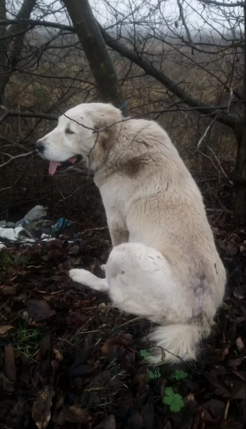 «Собаку породи алабай прив’язали мотузкою до дерева на смітнику… Це дівчинка. Вік 5–6 років. Дуже добра і спокійна і лагідна», – написала волонтерка.