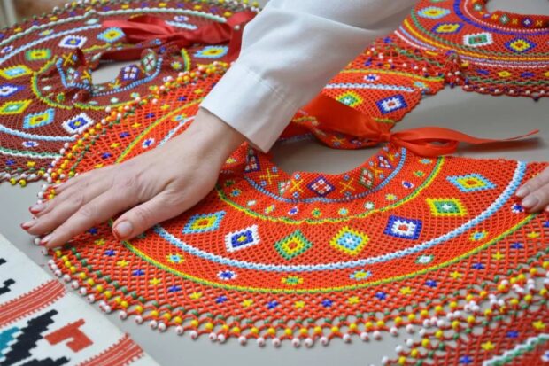 Ще одним діамантом списку стала кривулька або кривуля — лемківська жіноча прикраса з бісеру. Вона має вигляд широкого ажурного коміра, що вкриває шию та плечі, доповнюючи вишитий одяг. Складні геометричні орнаменти — ромби, хрести та зиґзаґи — не просто прикрашали жінку, а несли в собі глибоку символіку. Сьогодні мистецтво створення кривульок переживає справжнє відродження та стає трендовим аксесуаром для сучасної молоді.