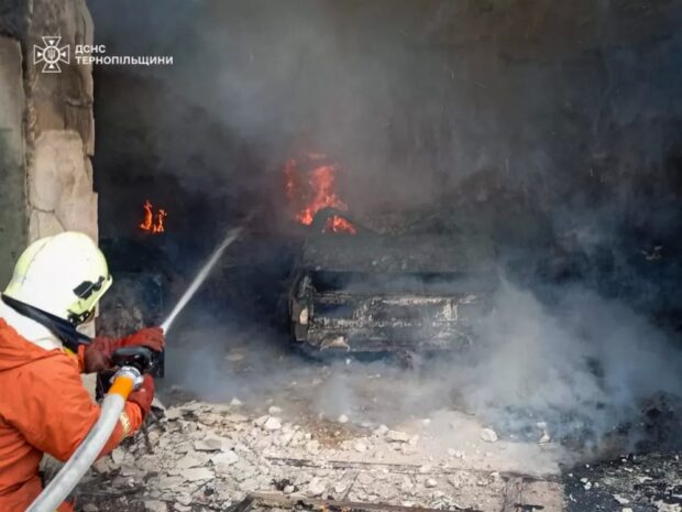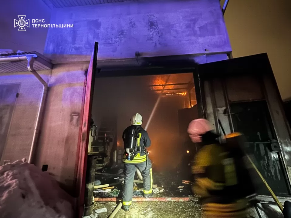 Вогонь повністю охопив будівлю гаража площею 80 м² та знищив не лише приміщення, а й майно, що знаходилося всередині. Внаслідок інциденту власники втратили автомобіль, значні запаси зерна та господарське обладнання. Про це повідомили в Головному управлінні ДСНС України у Тернопільській області.
