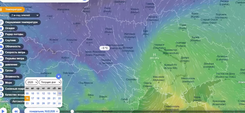 За даними погодного радара Ventusky, з заходу на Україну суне значний сніг. Він розпочнеться після обіду і йтиме майже до ранку.