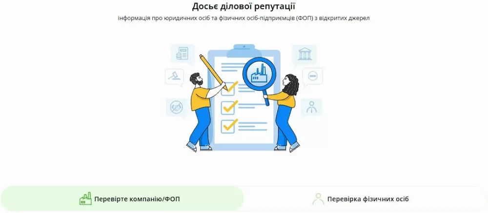 Щодо ФОП інструмент також надає актуальні дані реєстрації, сферу їх діяльності, відомості про фінансову репутацію з відкритих джерел, наявність виконавчих проваджень та санкцій.