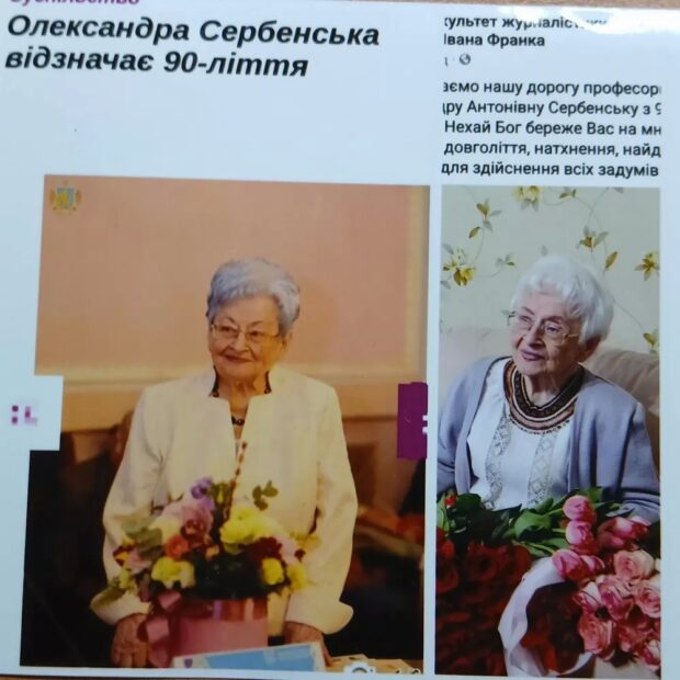97-ліття відзначила українська філологиня, доктор філологічних наук та професор Олександра Антонівна Сербенська з Тернопільщини. Попри солідний вік, науковиця не припиняє своєї діяльності.