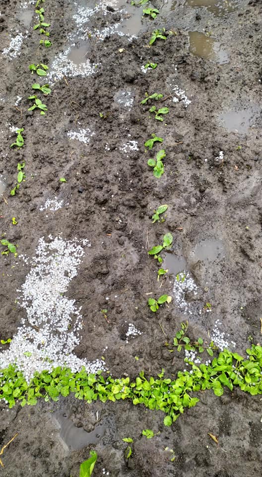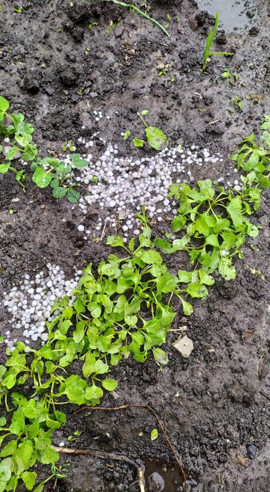 Дощ, град, блискавиці і навіть подекуди сніг – такою погода була після обіду 27 травня на Тернопільщині. В результаті негоди постраждали городи та посіви на полях.