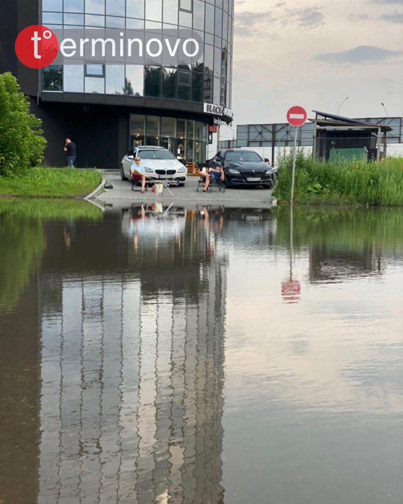 Тернополянам вже настільки набридли систематичні потопи у місті після кожного ледь сильнішого дощу, що люди почали дану проблему висміювати. Щоб привернути увагу влади міста до наболілої проблеми, сьогодні тернополянин Роман із товаришем влаштували “риболовлю” прямо біля торгового центру поблизу Збаразького кільця. Чоловіки розклали крісла і закинули вудки у.. .величезну калабаню, яка утворилася після зливи. Фото із “риболовлі” розмістили у Instagram.
