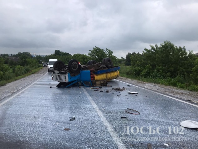 В результаті удару вантажівка перекинулася. До лікарні з тілесними ушкодженнями госпіталізували водія молоковозу. В обох кермувальників відібрали взірці крові для перевірки на вміст алкоголю.