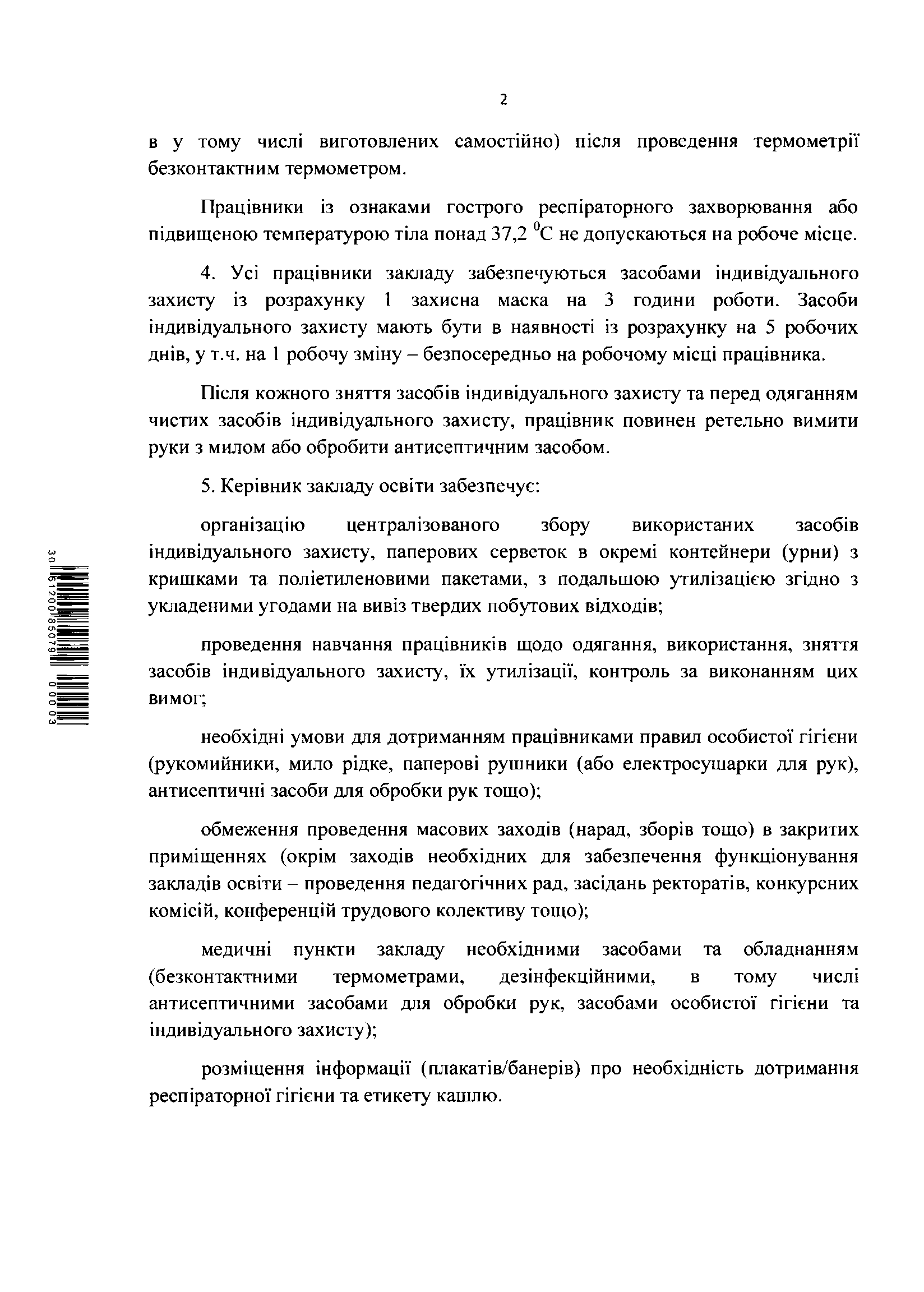 Керівник садка, школи, училища, університету має забезпечити в тому числі безпечні умови для гігієни працівників: наявність рідкого мила, паперових рушників або електросушарки та антисептиків.