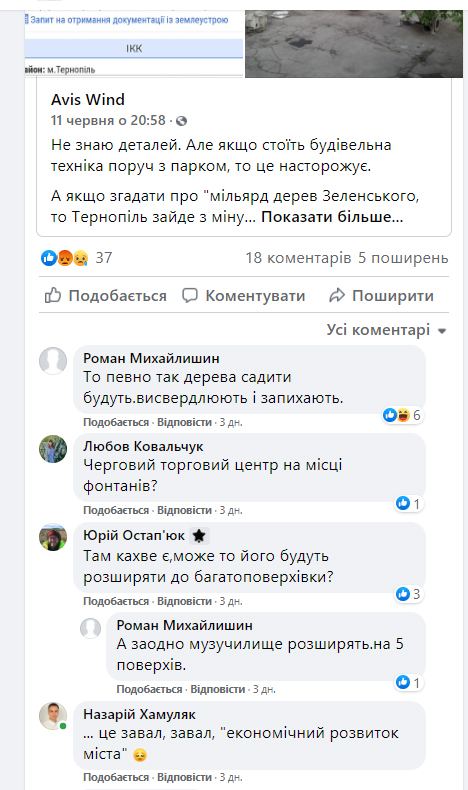 Здебільшого користувачі соцмереж не чекають від влади міста вже нічого доброго, а тому висувають припущення, що готується чергова забудова.